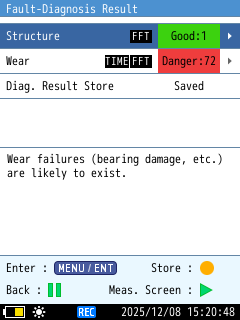 - Sau khi chẩn đoán lỗi, dữ liệu đo lường như dạng sóng theo thời gian và phổ FFT có thể được tham khảo.
